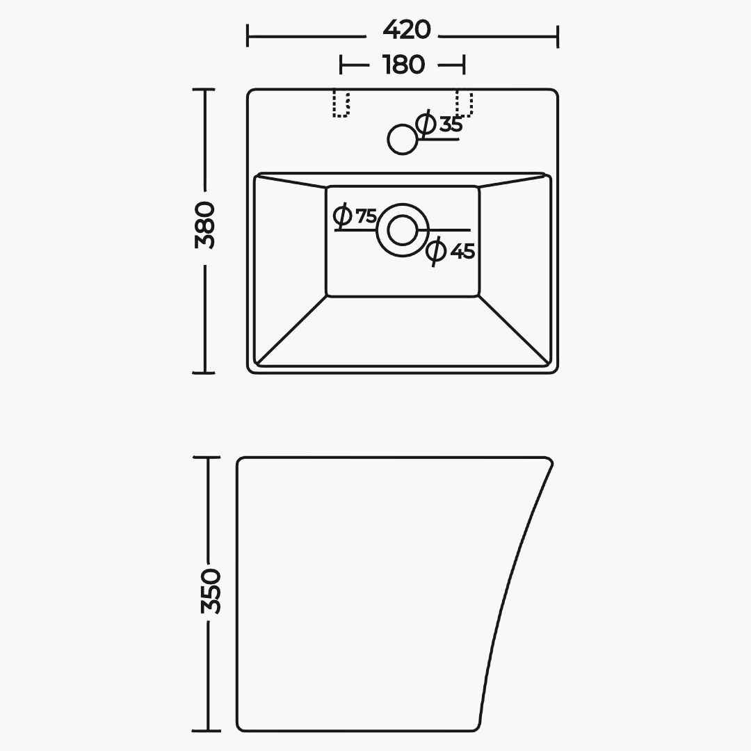 The rectangular shape of the CROFTON basin introduces a clean and contemporary aesthetic, while the inclusion of a half pedestal ensures a modern and space-efficient design. Meticulously crafted, the basin's surface showcases impeccable finishing.