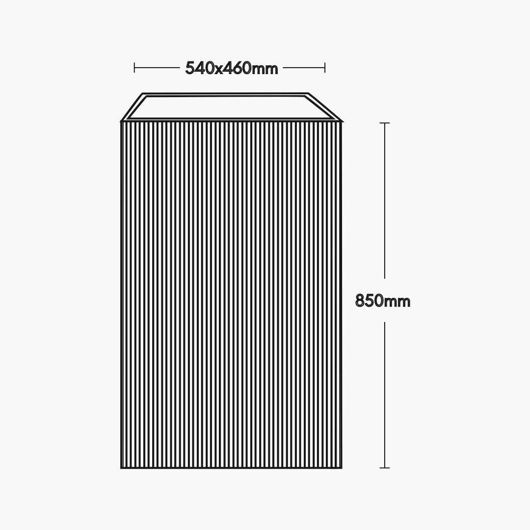 Presenting our square standalone basin with a quartz basin nestled within, encased in a distinctive fluted Valsadi Sag along its curved surface area. Crafted from pre-treated waterproof and termite-proof wood, this basin seamlessly merges modern aesthetics with enduring quality, making it a sophisticated addition to your personal space.