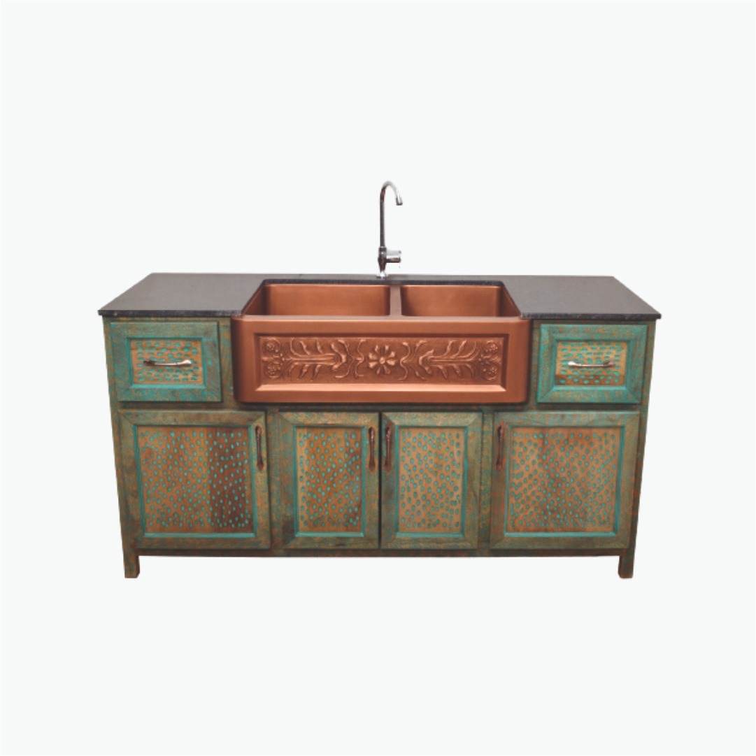 The Begonia Copper Sink is a masterpiece of craftsmanship, featuring a double-walled design for added strength and insulation. Its front panel showcases a beautifully symmetrical pattern, with a Begonia flower at the center and gracefully extending stems and leaves on either side.