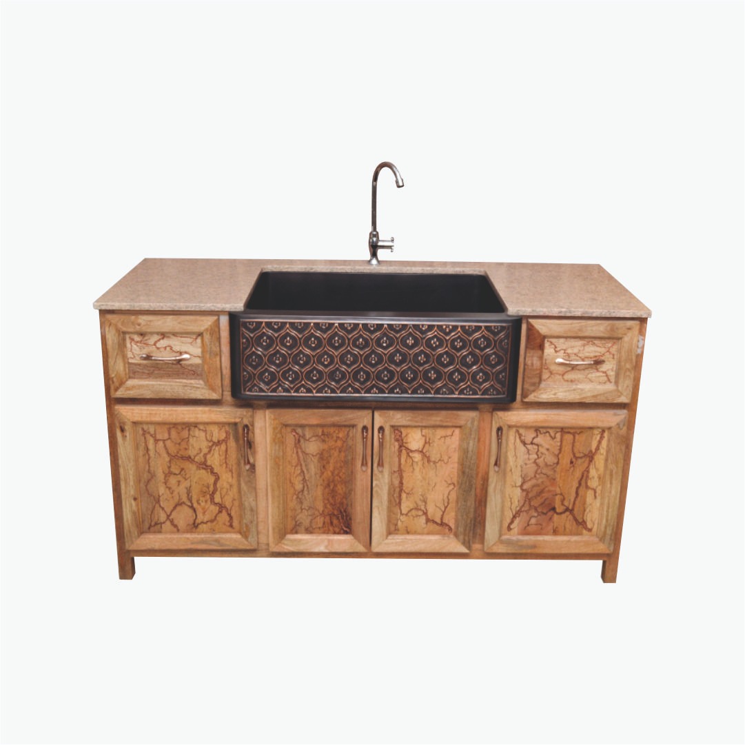 The Portcullis Copper Sink combines bold contrast with intricate craftsmanship. Its black etched finish gives it a modern, sophisticated look, while the shining copper front panel showcases an embossed Portcullis flower design.