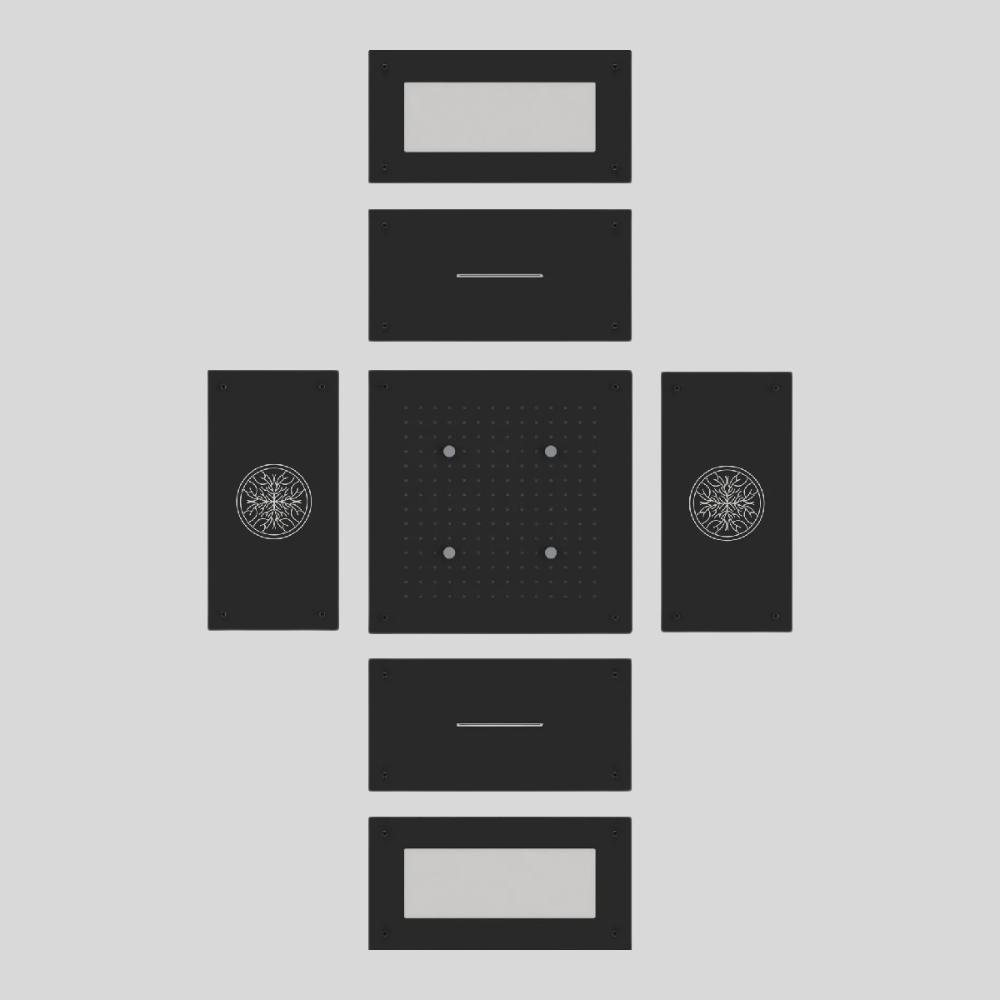 Transform your bathroom architecture with Focal a shower system that defies boundaries. Arrange the seven distinct tiles over your roof as you see it, creating a bespoke bathing space tailored to your preferences. With 2 Chroma Bar tiles for vibrant lighting, 2 featuring integrated speakers, 2 with cascading water flow, and 1 main tile encompassing both drain and mist flow, Focal offers endless possibilities.